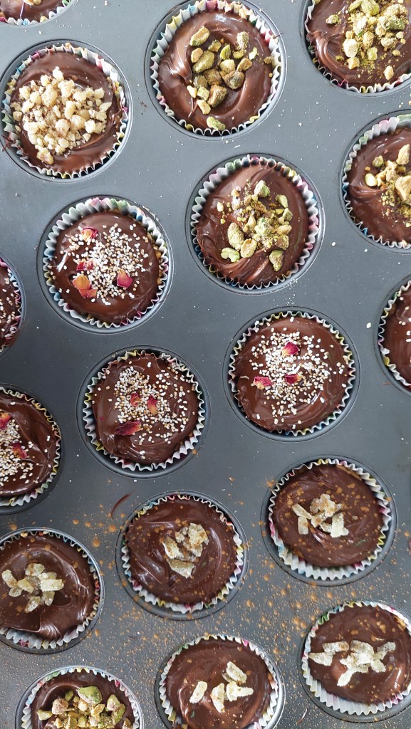 Then fill up the remaining half of the cupcake moulds with the melted chocolate!