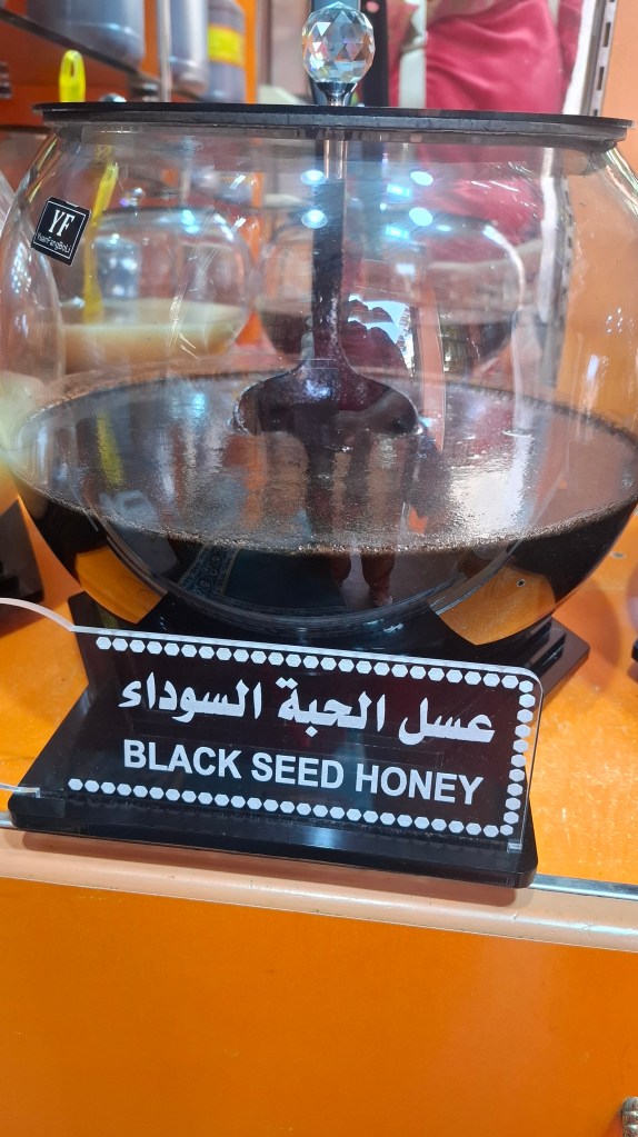 There is a large variety of really interesting honeys in Dubai- a lot of it coming from the surrounding region (Yemen, Kyrgyzstan, Azerbaijan, Pakistan etc). But I had never seen white honey before, what a cool sight! I read it is white as it’s a wild forest and wild mountain honey, and the bees feed mostly on white clover and sage blossoms. All the vendors informed me that it is especially rich in calcium and Vit B12. It is also rich in minerals like copper, potassium, phosphorus and zinc. The taste is milky and mild, but the sight is super intriguing. I came back home with a small jar as it’s such a precious reminder of the infinite richness in nature. Like most honeys, white honey is also used to boost immunity, aid digestion, soothe the respiratory tract and improve skin health. Another interesting use of white honey, which is seen as a sacred gift from nature, is its use in rituals for protection and to enhance blessings or prayers.
