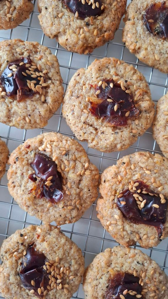 But my current favorite is a double lemony coconut cookie with a gooey date center. It’s “double lemony” because I use both lemon zest and ground black lime, which I had leftover from another recipe. It was a happy accident, born from using up bits and pieces at home, but it’s turned into a personal favorite.