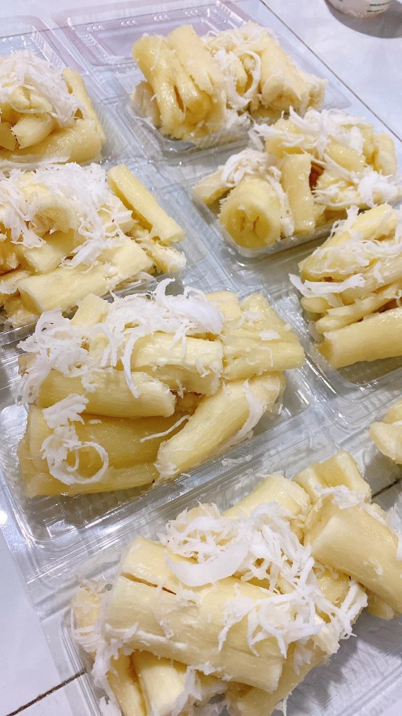 - Khoai mi nuoc cot dua- steamed cassava topped with sweet coconut milk dessert