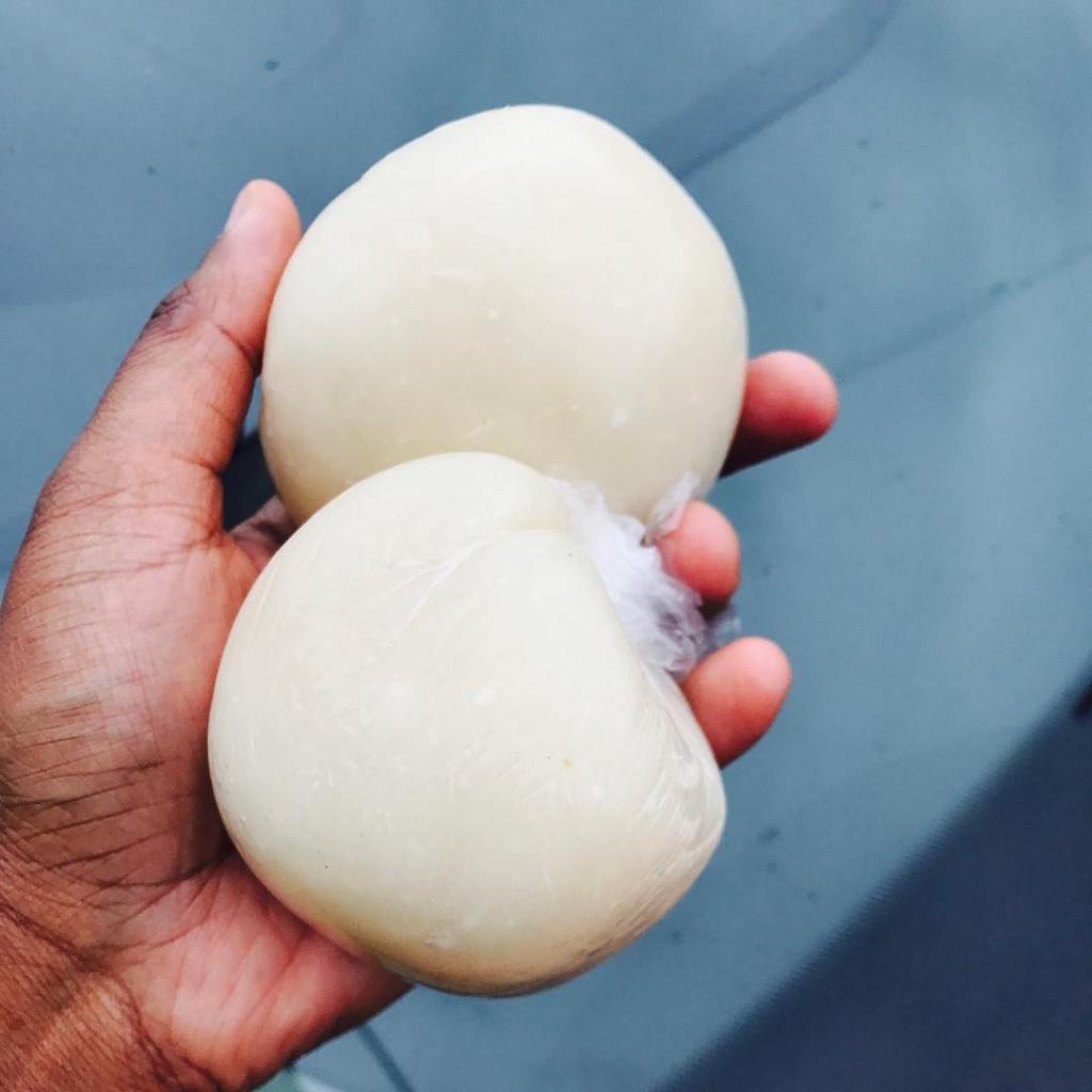 - Banku- made of a slightly fermented cooked mixture of maize and cassava doughs formed into single-serving balls. Unlike Fufu, it is cooked (not pounded).